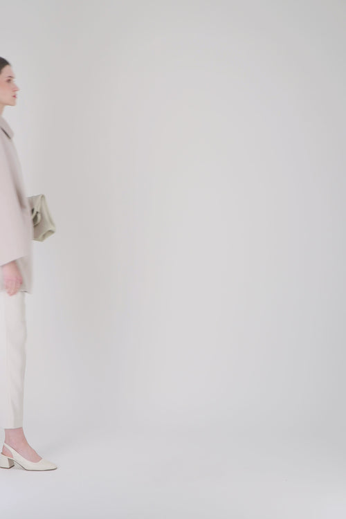 Manteau court en double face laine et cachemire, décliné dans une teinte beton douce et contemporaine.